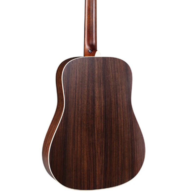 Lưng và hông làm từ gỗ Solid Rosewood hoặc Solid Koa (tùy phiên bản) nguyên tấm, mang lại chất âm giàu chi tiết và độ sâu âm học vượt trội. Gỗ Rosewood mang lại âm bass sâu, trong khi Koa mang lại âm trung sáng, tạo nên chất âm phong phú và khác biệt. Việc sử dụng gỗ thịt nguyên tấm ở toàn bộ thân đàn giúp cây đàn có âm thanh "thở" tự do và phát triển theo thời gian.