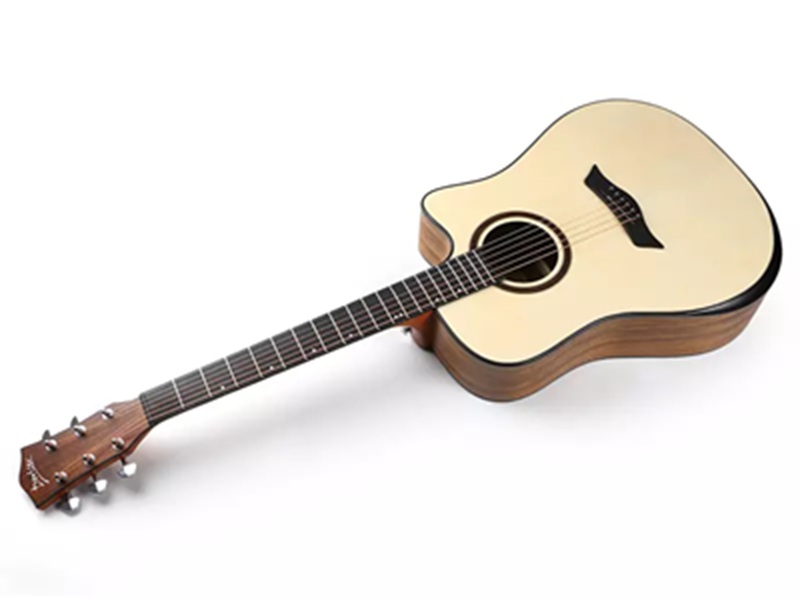 Điểm đắt giá nhất trên mặt tiền của model này chính là thiết kế Arm-rest (bệ tì tay) được vát tinh xảo ở góc thùng đàn. Chi tiết này không chỉ mang lại vẻ thẩm mỹ hiện đại mà còn giúp loại bỏ hoàn toàn sự khó chịu khi cánh tay phải tì lên cạnh đàn. Kết hợp cùng lớp sơn mờ (Matt finish), mặt gỗ Spruce có không gian để rung động tự nhiên nhất, giúp âm thanh phát ra mộc mạc, có chiều sâu và sức lan tỏa cực tốt trong không gian rộng.