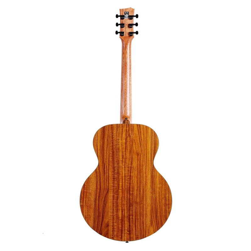 Phần lưng và hông của EM-X1 cũng được chế tác từ vật liệu HPL đồng bộ, tạo nên một thùng cộng hưởng có độ bền vĩnh cửu. Thiết kế thùng đàn được tối ưu hóa để chứa đựng hệ thống điện tử SP1 mà vẫn đảm bảo độ vang mộc tự nhiên. Sự kết hợp này mang lại dải âm thanh cân bằng với dải trung rõ nét và dải trầm chắc gọn, giúp tiếng đàn có độ phản hồi nhanh và trung thực, đáp ứng tốt cho cả phong cách đệm hát và Fingerstyle hiện đại.