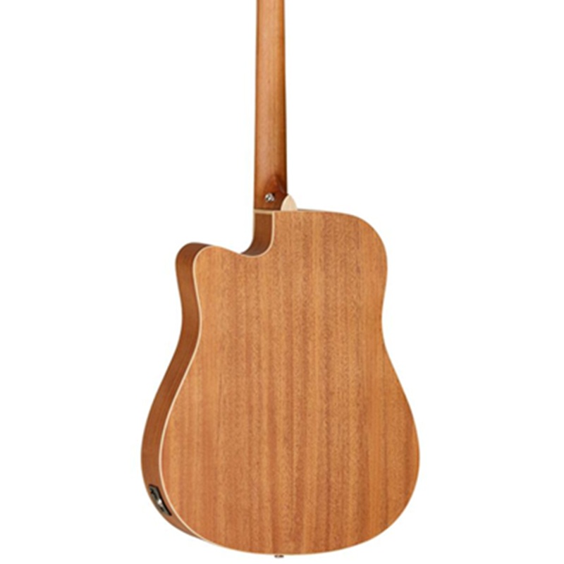 Mặt trước của đàn được chế tác từ gỗ Mahogany nguyên tấm (Solid Mahogany), một loại gỗ quý giúp âm thanh trở nên ấm áp và có chiều sâu hơn theo thời gian sử dụng. Dáng Dreadnought với thùng đàn lớn kết hợp cùng mặt gỗ nguyên tấm tạo nên một dải âm trầm mạnh mẽ và dải âm trung dày dặn, giúp mỗi nốt nhạc vang lên đều có sức nặng và sức hút riêng biệt.