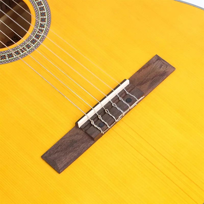 Hệ thống khóa đàn được thiết kế theo kiểu Three in row (ba khóa một hàng) truyền thống, với các chi tiết kim loại được gia công tỉ mỉ. Ngựa đàn được gắn chắc chắn vào mặt thùng, giúp truyền toàn bộ năng lượng từ dây nylon vào thùng đàn. Toàn bộ thân đàn còn được trang bị hệ thống Binding (đường viền) bằng nhựa ABS kết hợp 5 đường chỉ chạy dọc, vừa có tác dụng bảo vệ mép gỗ khỏi va đập, vừa tạo nên điểm nhấn thẩm mỹ tinh tế cho cây đàn dưới lớp sơn High Glossy bóng bẩy.