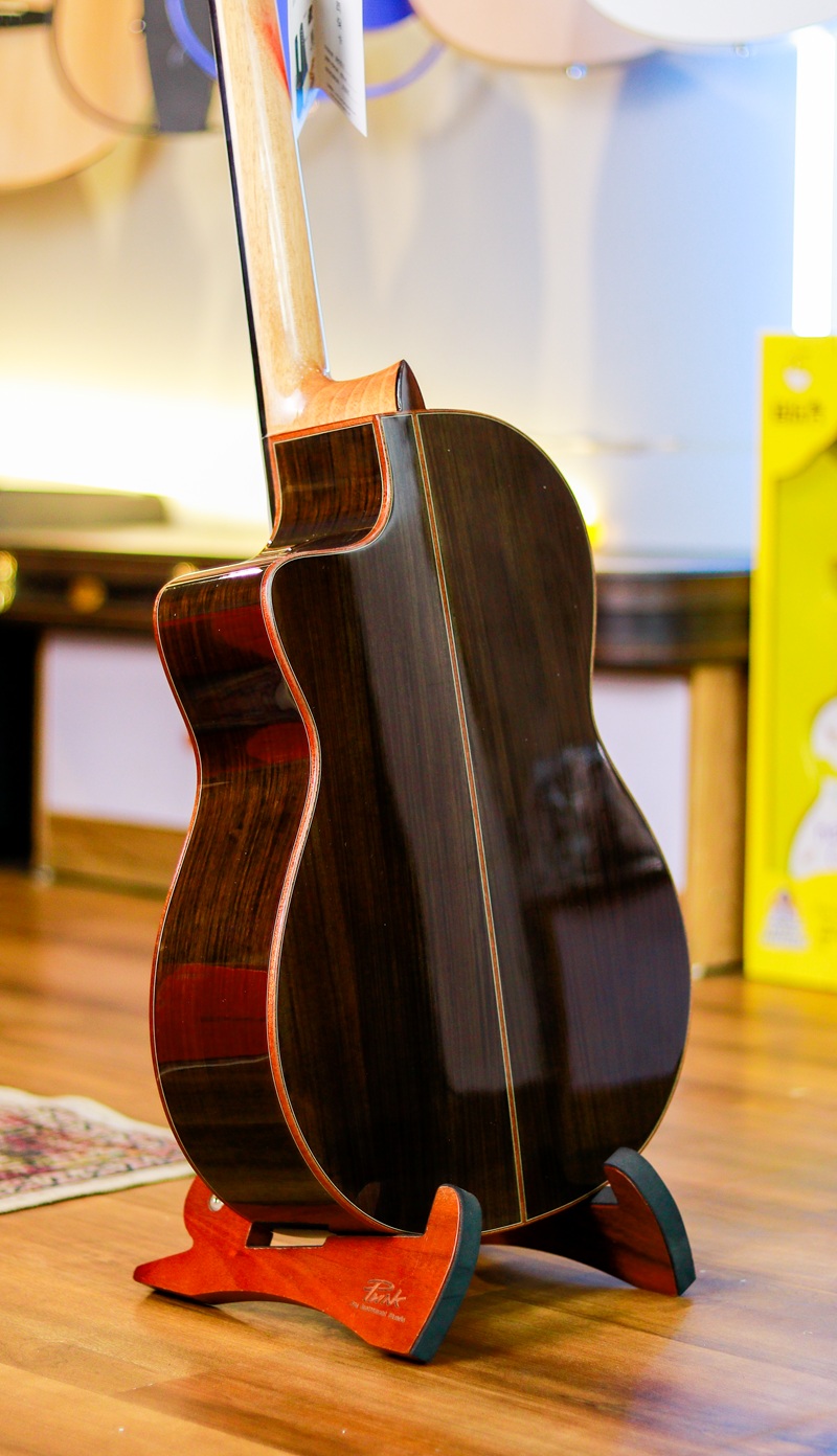 Mặt sau và hông đàn được làm từ gỗ Indian rosewood (gỗ hồng sắc Ấn Độ), mang đến vẻ đẹp trầm ấm với vân gỗ tự nhiên và tạo nên âm trầm mạnh mẽ. Indian rosewood không chỉ nổi bật về độ bền mà còn hỗ trợ tốt trong việc duy trì âm thanh sâu lắng, bổ sung hoàn hảo cho chất âm sáng của gỗ spruce ở mặt trước.