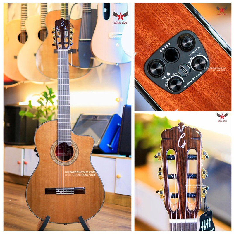 Đàn Guitar Classic Gotar Sunny CE là biểu tượng của sự kết hợp hoàn hảo giữa âm thanh cổ điển ấm áp và công nghệ hiện đại, mang đến trải nghiệm âm nhạc đỉnh cao cho mọi guitarist từ mới bắt đầu đến bán chuyên. Với mặt top gỗ tuyết tùng đỏ nguyên tấm (solid cedar), lưng và hông gỗ mahogany, cần gỗ okoume, và mặt phím rosewood Ấn Độ với 19 phím, cây guitar này được trang bị EQ Gotar Custom tích hợp Bluetooth và loa 10W, ngựa đàn và lược đàn từ xương bò, cùng dây nylon GOTAR G-1. Lớp hoàn thiện sơn bóng cao cấp với dáng khuyết (cutaway) và trọng lượng nhẹ khoảng 1.8 kg đảm bảo sự thoải mái và thẩm mỹ. Hãy để Guitar Đồng Tâm mang đến cây Gotar Sunny CE chính hãng với ưu đãi độc quyền, giúp Anh/Chị chinh phục mọi giai điệu cổ điển, flamenco, và classic!