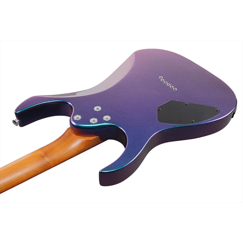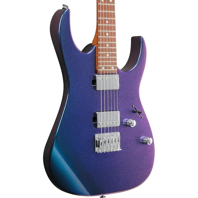 Ngoại hình của Đàn Guitar Điện Ibanez GRG121SP HH gây ấn tượng mạnh mẽ với sự kết hợp giữa thân đàn đổi màu và tấm bảo vệ đàn (pickguard) màu đen tối giản, tôn vinh nét đẹp chuyên nghiệp của dòng RG hiện đại. Sự kết hợp này trên Đàn Guitar Điện Ibanez GRG121SP HH không chỉ mang lại vẻ đẹp lộng lẫy dưới ánh đèn sân khấu mà còn thể hiện sự tỉ mỉ trong việc trang bị cần đàn Roasted Maple màu nâu ấm, tạo nên một nhạc cụ có sức hút mãnh liệt và đầy cảm hứng.