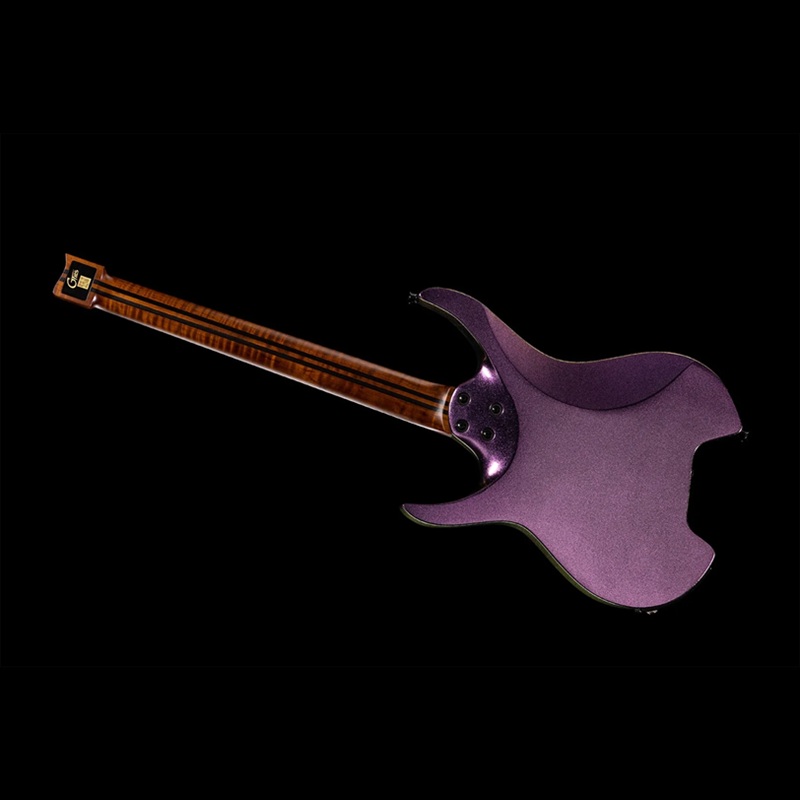 Mặt trước của Mooer GTRS W900 nổi bật với đường nét góc cạnh, hiện đại của thiết kế Headless (không đầu) và lớp sơn Aurora Pink bóng bẩy. Màu sắc này không chỉ là màu hồng thông thường mà là lớp sơn "Color-Changing" tinh tế, có khả năng chuyển sắc dưới ánh sáng sân khấu, tạo hiệu ứng thị giác đẳng cấp và chuyên nghiệp, phù hợp với guitarist muốn thể hiện cá tính mạnh mẽ.