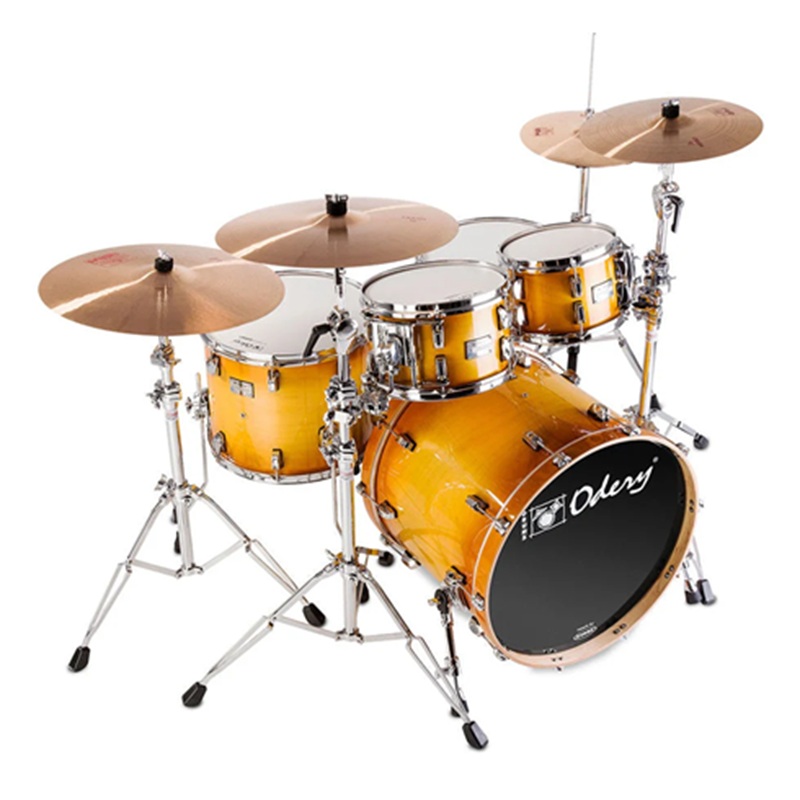 Bộ trống Odery Eyedentity EYE 125 có cấu hình gồm 2 tom (10"x7", 12"x8"), floor tom 16"x16", snare 14"x6", kick 22"x18", hi-hat 14" và crash 16". Vỏ gỗ maple 6 lớp với lớp hoàn thiện bóng, mang lại âm thanh acoustic mạnh mẽ và thẩm mỹ cao cấp, nổi bật với các veneer ngoại lai như Tigerwood hoặc Sapele cho vẻ ngoài độc đáo.