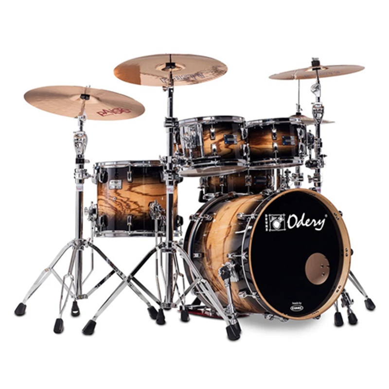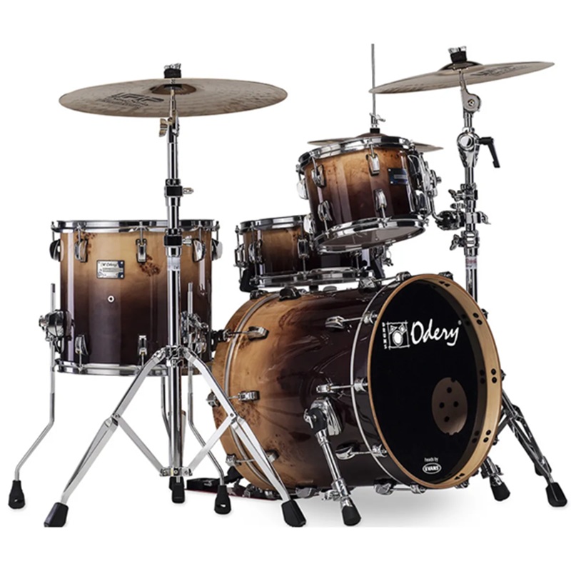 Bộ trống Odery Eyedentity EYE 135 có cấu hình gồm 2 tom (10"x7", 12"x7.5"), floor tom 16"x13", snare 14"x6", kick 22"x18", hi-hat 14" và crash 16". Vỏ gỗ maple 6 lớp với lớp hoàn thiện bóng, mang lại âm thanh acoustic mạnh mẽ và thẩm mỹ cao cấp, nổi bật với các veneer ngoại lai như Tigerwood hoặc Sapele cho vẻ ngoài độc đáo.