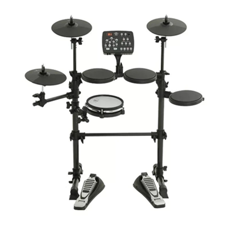 Bộ trống đi kèm stand hi-hat, pedal kick, ghế drummer, dùi trống, dễ lắp đặt. Viền mesh head với rim layered cho snare, tạo phản hồi tự nhiên, kết hợp cymbal full rubber cho độ bền cao.