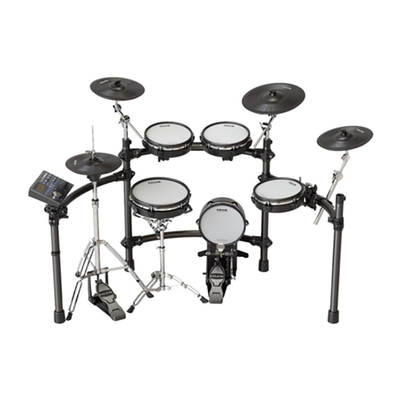 Cấu hình bao gồm 3 tom 8" mesh (with rim), snare 10" mesh (layered rims), 2 crash 12" (with edge & choke), ride 14" (with edge, bell & choke), hi-hat 13" with stand, kick 8" mesh, mang lại cảm giác chơi chân thực như trống acoustic. Lớp hoàn thiện mesh head giảm tiếng ồn, lý tưởng cho luyện tập.