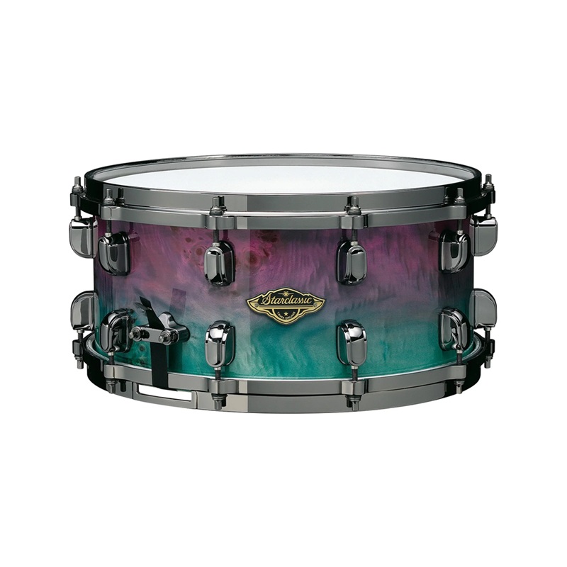 Snare drum Tama Starclassic Walnut/Birch Limited WBSS65BNM-NMF có kích thước 14"x6.5", vỏ 6mm 4-ply European Birch + 1 outer ply Mappa Burl + 2 inner ply American Black Walnut với lớp ngoài Nebula Mappa Burl Fade, lớp hoàn thiện Lacquer cao cấp, mang lại âm thanh acoustic warm low-to-mid, clear attack và thẩm mỹ limited edition. Bearing edges tối ưu tiếp xúc da trống, tăng độ nhạy và độ snappy, lý tưởng cho vai trò main snare hoặc side snare trong các setup biểu diễn hoặc phòng thu.